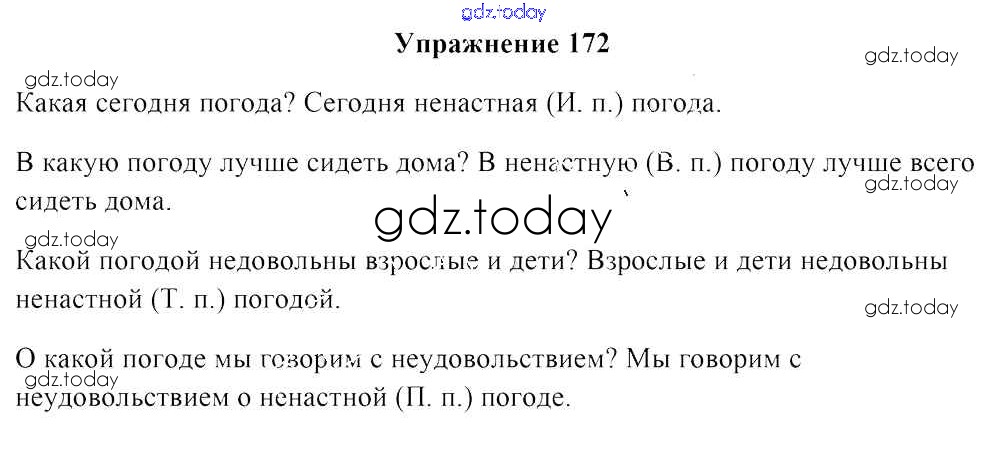 На страницах сайта gdz.today вы найдете учебный и вспомогательный материал, направленный на улучшения знаний школьной программы. ГДЗ - онлайн мир знаний Часть 1. Решение к заданиям 172 Учебнику по Русскому языку для 4 класса Антипова, Верниковская Национальный институт образования 2018