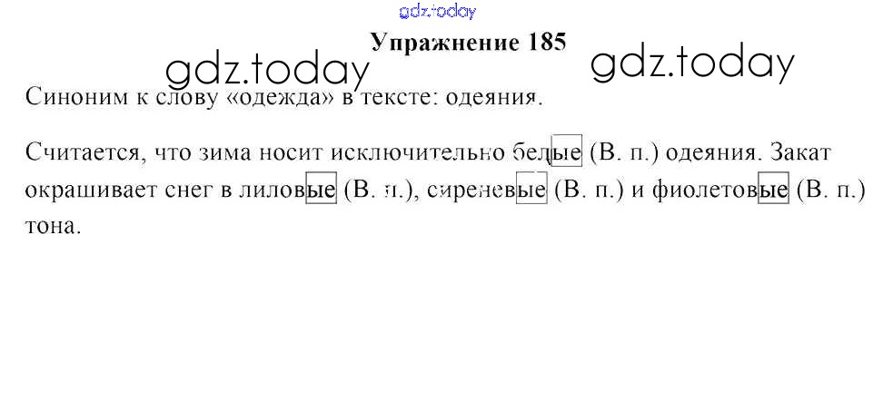 На страницах сайта gdz.today вы найдете учебный и вспомогательный материал, направленный на улучшения знаний школьной программы. ГДЗ - онлайн мир знаний Часть 1. Решение к заданиям 185 Учебнику по Русскому языку для 4 класса Антипова, Верниковская Национальный институт образования 2018