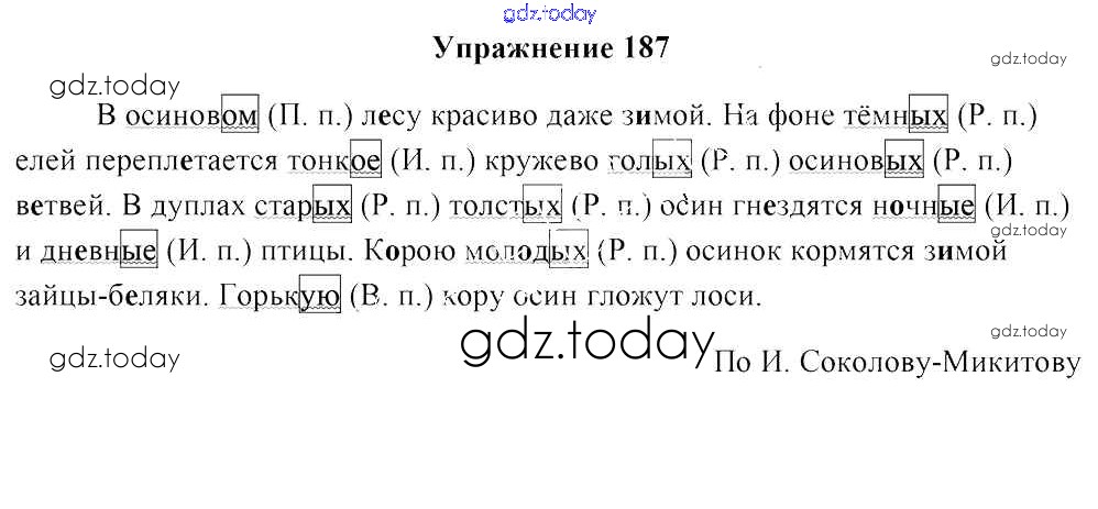 На страницах сайта gdz.today вы найдете учебный и вспомогательный материал, направленный на улучшения знаний школьной программы. ГДЗ - онлайн мир знаний Часть 1. Решение к заданиям 187 Учебнику по Русскому языку для 4 класса Антипова, Верниковская Национальный институт образования 2018