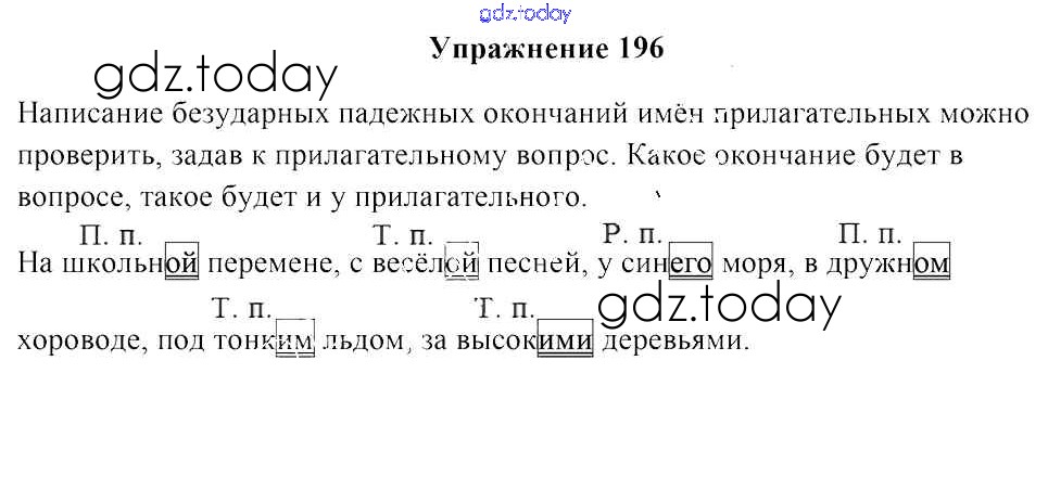 На страницах сайта gdz.today вы найдете учебный и вспомогательный материал, направленный на улучшения знаний школьной программы. ГДЗ - онлайн мир знаний Часть 1. Решение к заданиям 196 Учебнику по Русскому языку для 4 класса Антипова, Верниковская Национальный институт образования 2018