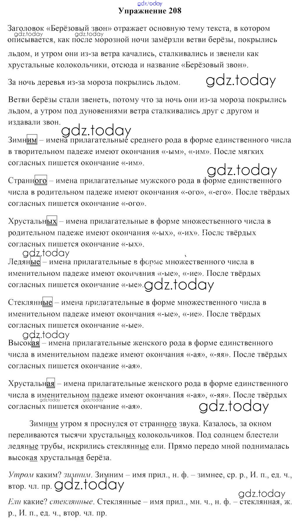Ответы к Часть 1. Решение к заданиям 208 Учебнику по Русскому языку для 4 класса Антипова, Верниковская Национальный институт образования 2018