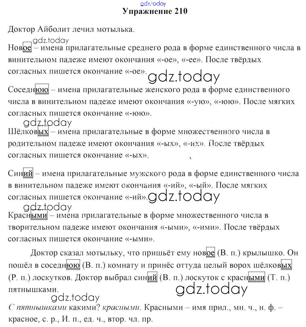 На страницах сайта gdz.today вы найдете учебный и вспомогательный материал, направленный на улучшения знаний школьной программы. ГДЗ - онлайн мир знаний Часть 1. Решение к заданиям 210 Учебнику по Русскому языку для 4 класса Антипова, Верниковская Национальный институт образования 2018