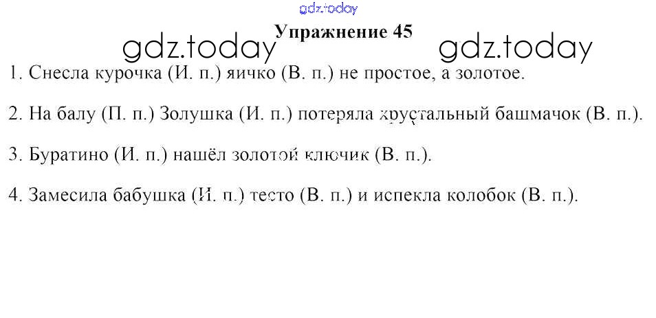 На страницах сайта gdz.today вы найдете учебный и вспомогательный материал, направленный на улучшения знаний школьной программы. ГДЗ - онлайн мир знаний Часть 1. Решение к заданиям 45 Учебнику по Русскому языку для 4 класса Антипова, Верниковская Национальный институт образования 2018