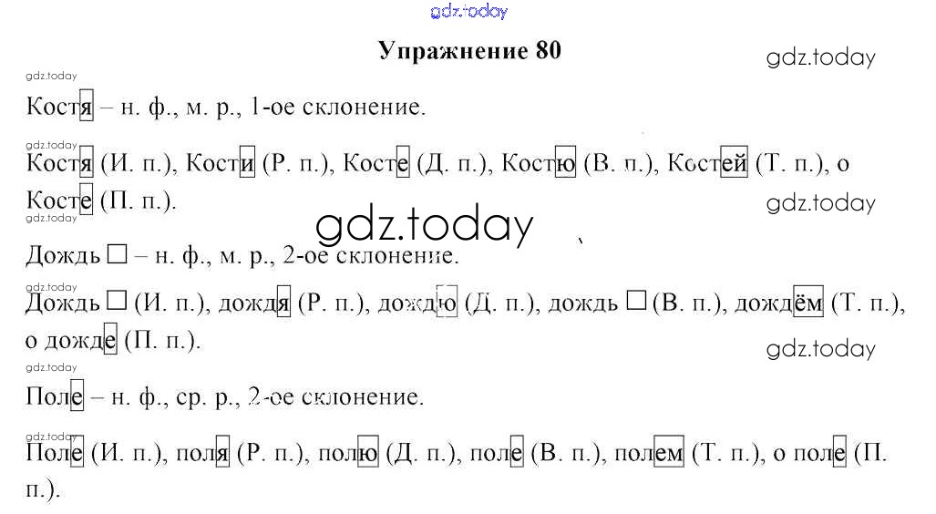 На страницах сайта gdz.today вы найдете учебный и вспомогательный материал, направленный на улучшения знаний школьной программы. ГДЗ - онлайн мир знаний Часть 1. Решение к заданиям 80 Учебнику по Русскому языку для 4 класса Антипова, Верниковская Национальный институт образования 2018