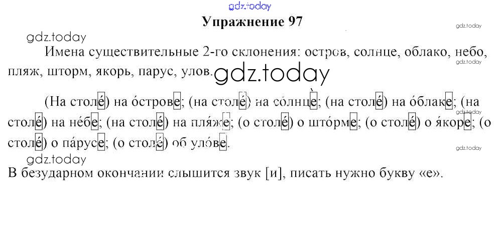 На страницах сайта gdz.today вы найдете учебный и вспомогательный материал, направленный на улучшения знаний школьной программы. ГДЗ - онлайн мир знаний Часть 1. Решение к заданиям 97 Учебнику по Русскому языку для 4 класса Антипова, Верниковская Национальный институт образования 2018