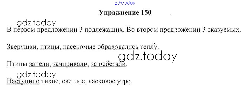 На страницах сайта gdz.today вы найдете учебный и вспомогательный материал, направленный на улучшения знаний школьной программы. ГДЗ - онлайн мир знаний Часть 2. Решение к заданиям 150 Учебнику по Русскому языку для 4 класса Антипова, Верниковская Национальный институт образования 2018