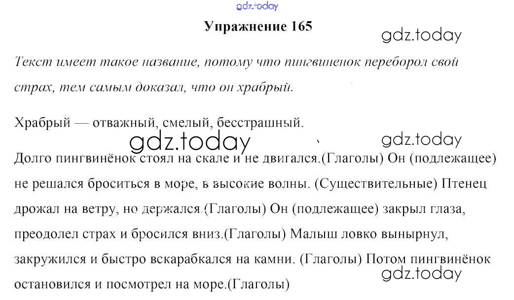 На страницах сайта gdz.today вы найдете учебный и вспомогательный материал, направленный на улучшения знаний школьной программы. ГДЗ - онлайн мир знаний Часть 2. Решение к заданиям 165 Учебнику по Русскому языку для 4 класса Антипова, Верниковская Национальный институт образования 2018