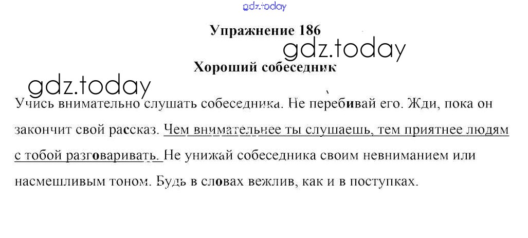 На страницах сайта gdz.today вы найдете учебный и вспомогательный материал, направленный на улучшения знаний школьной программы. ГДЗ - онлайн мир знаний Часть 2. Решение к заданиям 186 Учебнику по Русскому языку для 4 класса Антипова, Верниковская Национальный институт образования 2018