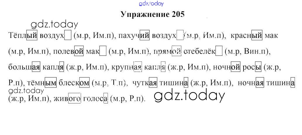 На страницах сайта gdz.today вы найдете учебный и вспомогательный материал, направленный на улучшения знаний школьной программы. ГДЗ - онлайн мир знаний Часть 2. Решение к заданиям 205 Учебнику по Русскому языку для 4 класса Антипова, Верниковская Национальный институт образования 2018