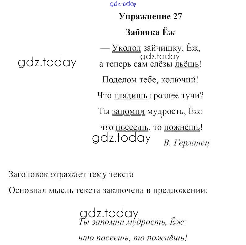 На страницах сайта gdz.today вы найдете учебный и вспомогательный материал, направленный на улучшения знаний школьной программы. ГДЗ - онлайн мир знаний Часть 2. Решение к заданиям 27 Учебнику по Русскому языку для 4 класса Антипова, Верниковская Национальный институт образования 2018
