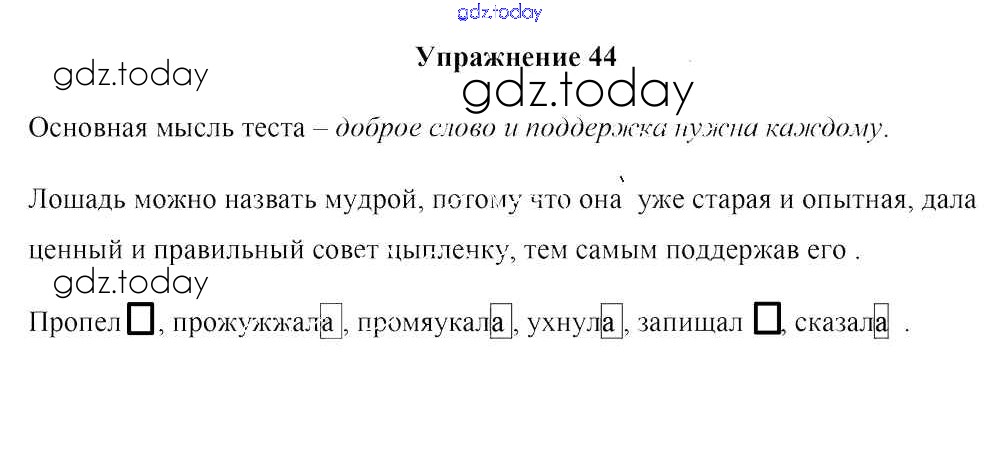 На страницах сайта gdz.today вы найдете учебный и вспомогательный материал, направленный на улучшения знаний школьной программы. ГДЗ - онлайн мир знаний Часть 2. Решение к заданиям 44 Учебнику по Русскому языку для 4 класса Антипова, Верниковская Национальный институт образования 2018