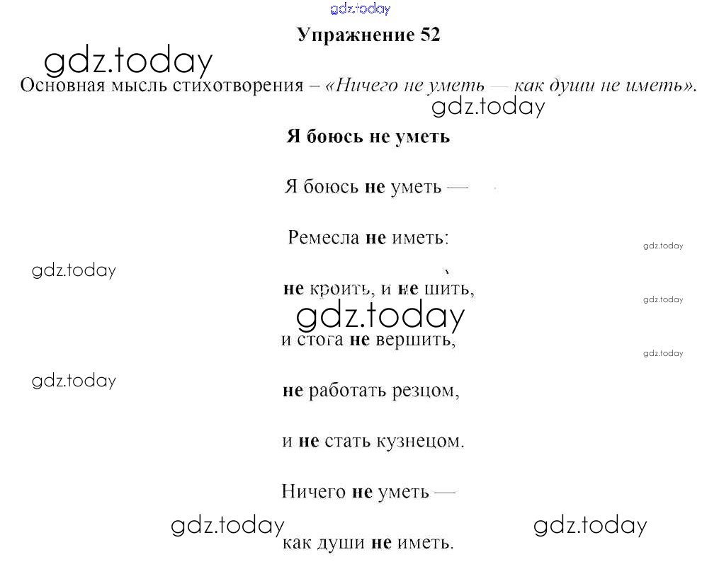 На страницах сайта gdz.today вы найдете учебный и вспомогательный материал, направленный на улучшения знаний школьной программы. ГДЗ - онлайн мир знаний Часть 2. Решение к заданиям 52 Учебнику по Русскому языку для 4 класса Антипова, Верниковская Национальный институт образования 2018