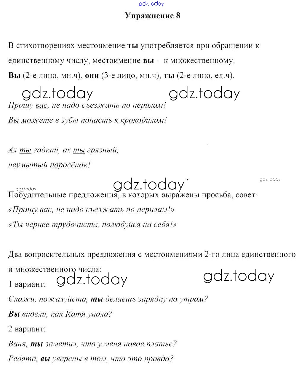 На страницах сайта gdz.today вы найдете учебный и вспомогательный материал, направленный на улучшения знаний школьной программы. ГДЗ - онлайн мир знаний Часть 2. Решение к заданиям 8 Учебнику по Русскому языку для 4 класса Антипова, Верниковская Национальный институт образования 2018