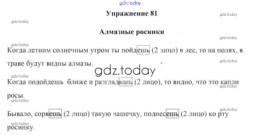 На страницах сайта gdz.today вы найдете учебный и вспомогательный материал, направленный на улучшения знаний школьной программы. ГДЗ - онлайн мир знаний Часть 2. Решение к заданиям 81 Учебнику по Русскому языку для 4 класса Антипова, Верниковская Национальный институт образования 2018