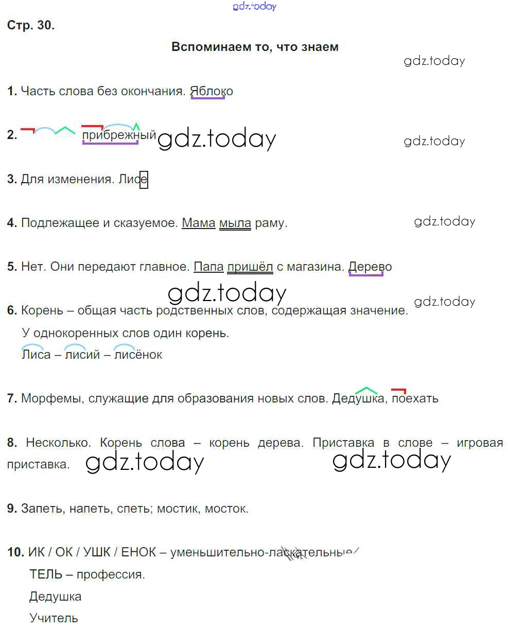 На страницах сайта gdz.today вы найдете учебный и вспомогательный материал, направленный на улучшения знаний школьной программы. ГДЗ - онлайн мир знаний Часть 1. Страницы Вспоминаем, то что знаем 30 Учебнику по Русскому языку для 4 класса Бунеев, Бунеева Баласс Школа 2100 2016