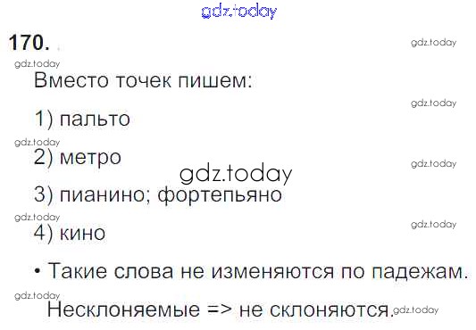 На страницах сайта gdz.today вы найдете учебный и вспомогательный материал, направленный на улучшения знаний школьной программы. ГДЗ - онлайн мир знаний Решение к упражнениям 170 Учебнику по Русскому языку для 4 класса Бунеев, Бунеева Баласс Школа 2100 2016
