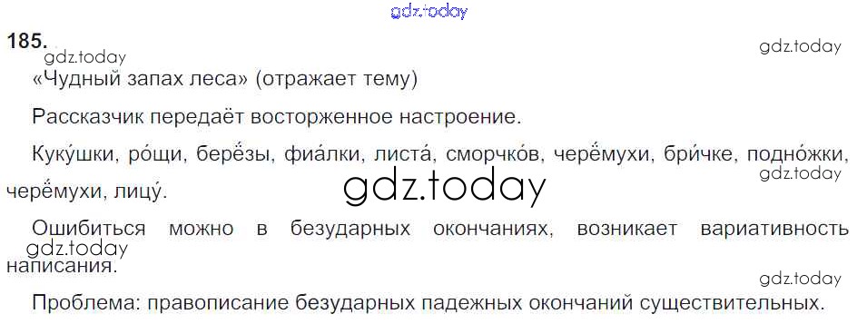 На страницах сайта gdz.today вы найдете учебный и вспомогательный материал, направленный на улучшения знаний школьной программы. ГДЗ - онлайн мир знаний Решение к упражнениям 185 Учебнику по Русскому языку для 4 класса Бунеев, Бунеева Баласс Школа 2100 2016