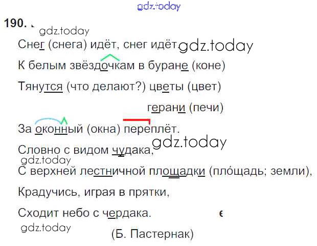 На страницах сайта gdz.today вы найдете учебный и вспомогательный материал, направленный на улучшения знаний школьной программы. ГДЗ - онлайн мир знаний Решение к упражнениям 190 Учебнику по Русскому языку для 4 класса Бунеев, Бунеева Баласс Школа 2100 2016