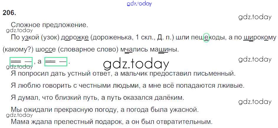 На страницах сайта gdz.today вы найдете учебный и вспомогательный материал, направленный на улучшения знаний школьной программы. ГДЗ - онлайн мир знаний Решение к упражнениям 206 Учебнику по Русскому языку для 4 класса Бунеев, Бунеева Баласс Школа 2100 2016