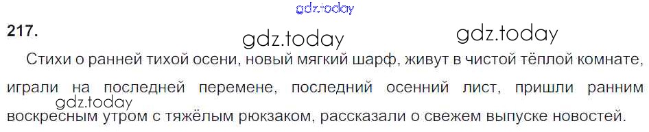 На страницах сайта gdz.today вы найдете учебный и вспомогательный материал, направленный на улучшения знаний школьной программы. ГДЗ - онлайн мир знаний Решение к упражнениям 217 Учебнику по Русскому языку для 4 класса Бунеев, Бунеева Баласс Школа 2100 2016
