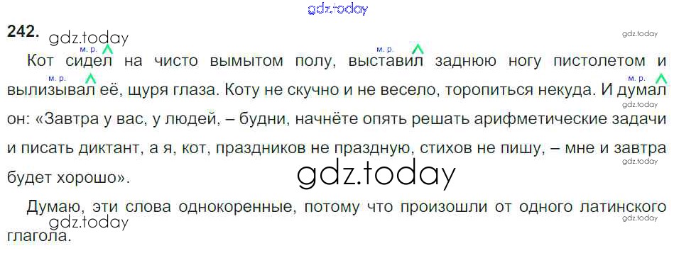 На страницах сайта gdz.today вы найдете учебный и вспомогательный материал, направленный на улучшения знаний школьной программы. ГДЗ - онлайн мир знаний Решение к упражнениям 242 Учебнику по Русскому языку для 4 класса Бунеев, Бунеева Баласс Школа 2100 2016