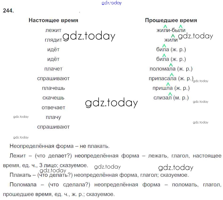 На страницах сайта gdz.today вы найдете учебный и вспомогательный материал, направленный на улучшения знаний школьной программы. ГДЗ - онлайн мир знаний Решение к упражнениям 244 Учебнику по Русскому языку для 4 класса Бунеев, Бунеева Баласс Школа 2100 2016