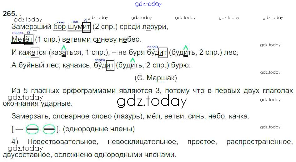 На страницах сайта gdz.today вы найдете учебный и вспомогательный материал, направленный на улучшения знаний школьной программы. ГДЗ - онлайн мир знаний Решение к упражнениям 265 Учебнику по Русскому языку для 4 класса Бунеев, Бунеева Баласс Школа 2100 2016