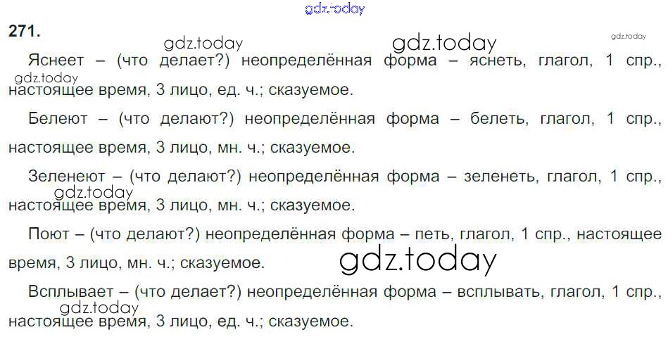 На страницах сайта gdz.today вы найдете учебный и вспомогательный материал, направленный на улучшения знаний школьной программы. ГДЗ - онлайн мир знаний Решение к упражнениям 271 Учебнику по Русскому языку для 4 класса Бунеев, Бунеева Баласс Школа 2100 2016
