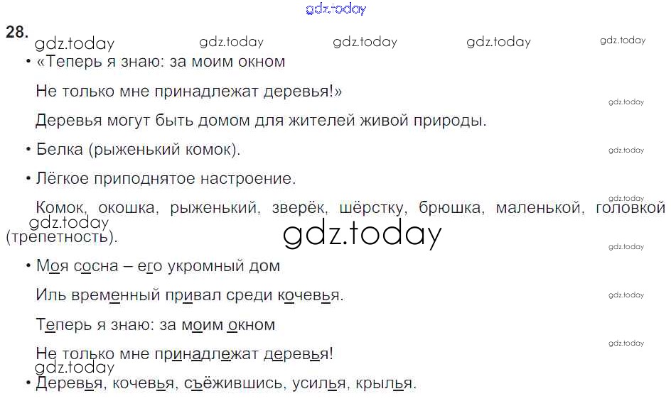 На страницах сайта gdz.today вы найдете учебный и вспомогательный материал, направленный на улучшения знаний школьной программы. ГДЗ - онлайн мир знаний Решение к упражнениям 28 Учебнику по Русскому языку для 4 класса Бунеев, Бунеева Баласс Школа 2100 2016