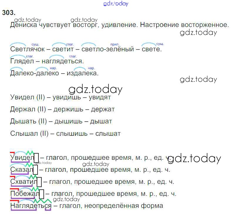 На страницах сайта gdz.today вы найдете учебный и вспомогательный материал, направленный на улучшения знаний школьной программы. ГДЗ - онлайн мир знаний Решение к упражнениям 303 Учебнику по Русскому языку для 4 класса Бунеев, Бунеева Баласс Школа 2100 2016