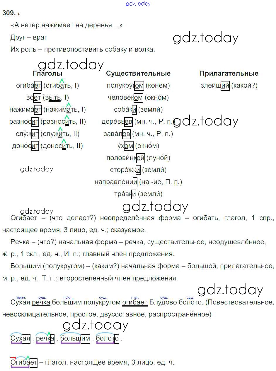 На страницах сайта gdz.today вы найдете учебный и вспомогательный материал, направленный на улучшения знаний школьной программы. ГДЗ - онлайн мир знаний Решение к упражнениям 309 Учебнику по Русскому языку для 4 класса Бунеев, Бунеева Баласс Школа 2100 2016