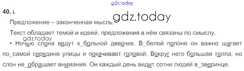На страницах сайта gdz.today вы найдете учебный и вспомогательный материал, направленный на улучшения знаний школьной программы. ГДЗ - онлайн мир знаний Решение к упражнениям 40 Учебнику по Русскому языку для 4 класса Бунеев, Бунеева Баласс Школа 2100 2016