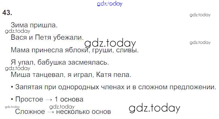 Ответы к Решение к упражнениям 43 Учебнику по Русскому языку для 4 класса Бунеев, Бунеева Баласс Школа 2100 2016