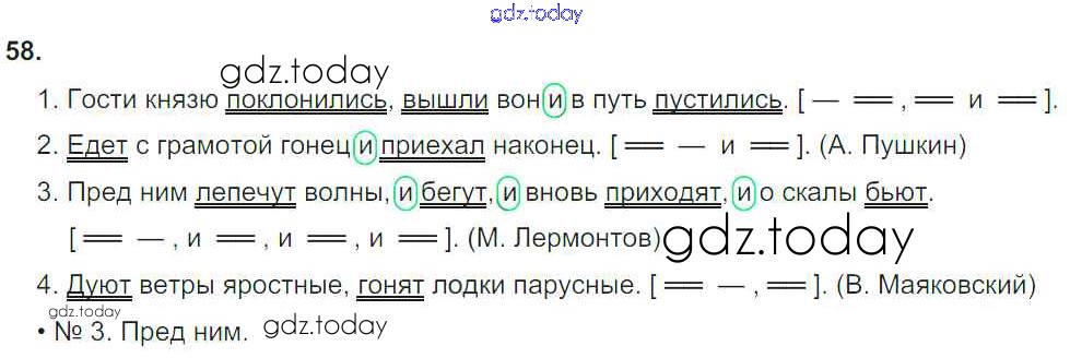 Ответы к Решение к упражнениям 58 Учебнику по Русскому языку для 4 класса Бунеев, Бунеева Баласс Школа 2100 2016