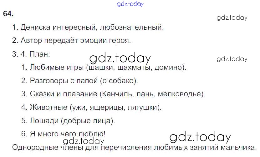 На страницах сайта gdz.today вы найдете учебный и вспомогательный материал, направленный на улучшения знаний школьной программы. ГДЗ - онлайн мир знаний Решение к упражнениям 64 Учебнику по Русскому языку для 4 класса Бунеев, Бунеева Баласс Школа 2100 2016
