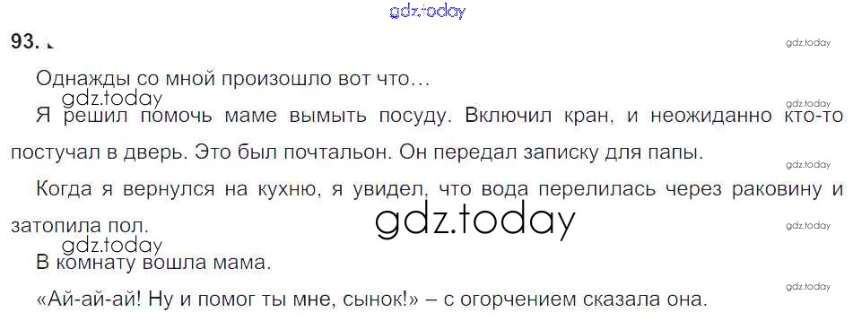 На страницах сайта gdz.today вы найдете учебный и вспомогательный материал, направленный на улучшения знаний школьной программы. ГДЗ - онлайн мир знаний Решение к упражнениям 93 Учебнику по Русскому языку для 4 класса Бунеев, Бунеева Баласс Школа 2100 2016