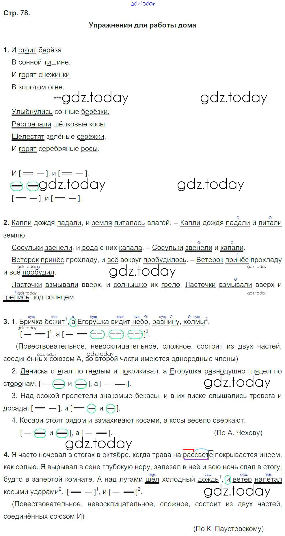Ответы к Часть 1. Страницы Решение к домашним упражнениям 78 Учебнику по Русскому языку для 4 класса Бунеев, Бунеева Баласс Школа 2100 2016