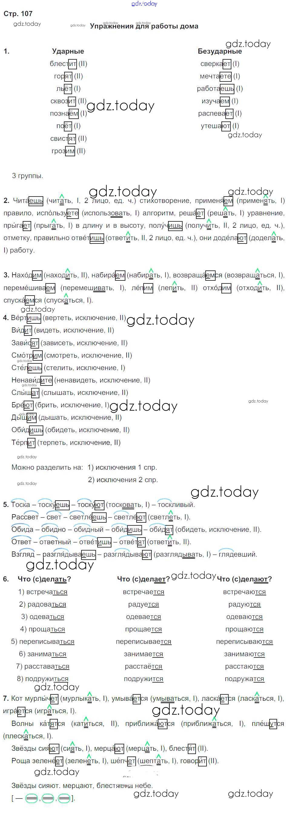 Ответы к Часть 2. Страницы Решение к домашним упражнениям 107 Учебнику по Русскому языку для 4 класса Бунеев, Бунеева Баласс Школа 2100 2016