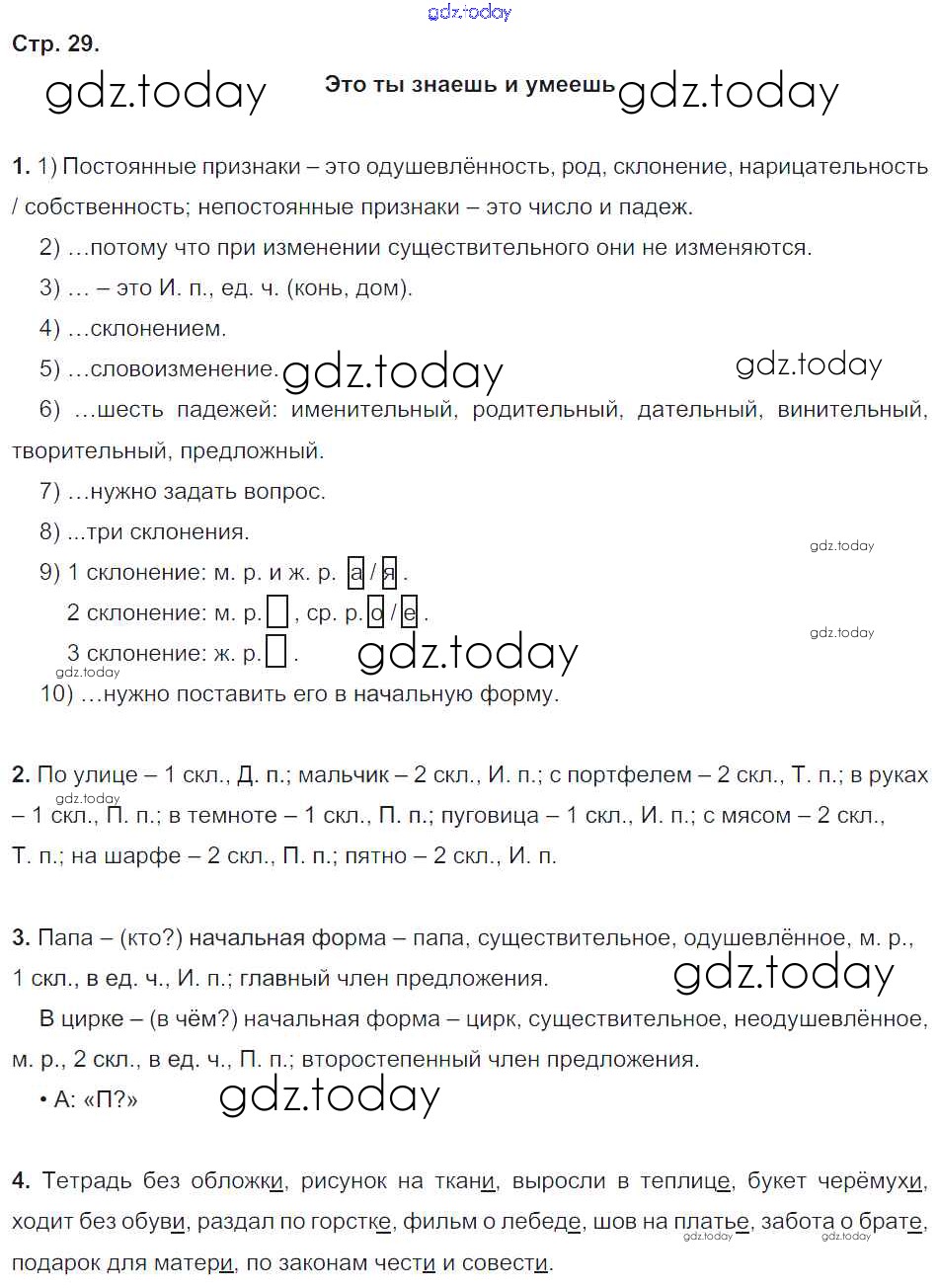 На страницах сайта gdz.today вы найдете учебный и вспомогательный материал, направленный на улучшения знаний школьной программы. ГДЗ - онлайн мир знаний Часть 2. Страницы Знаем и умеем 29 Учебнику по Русскому языку для 4 класса Бунеев, Бунеева Баласс Школа 2100 2016