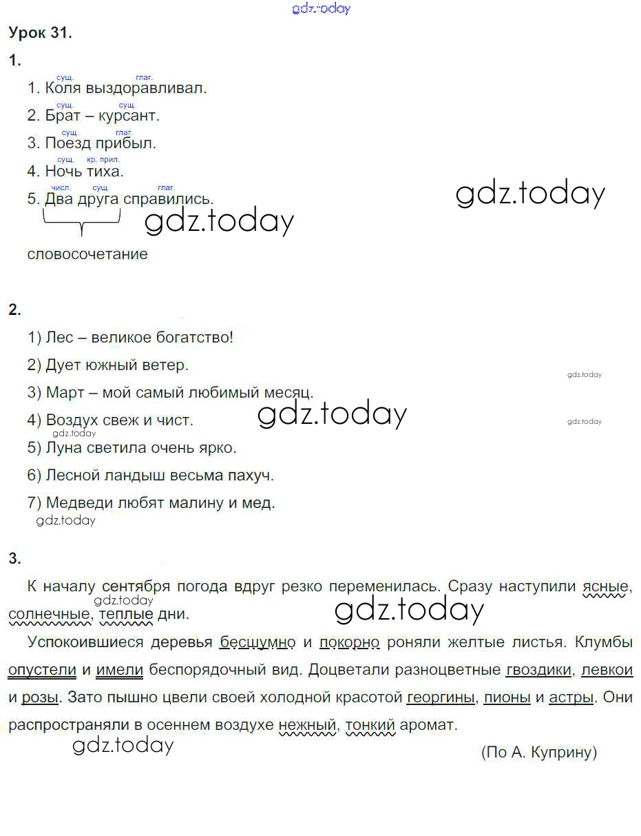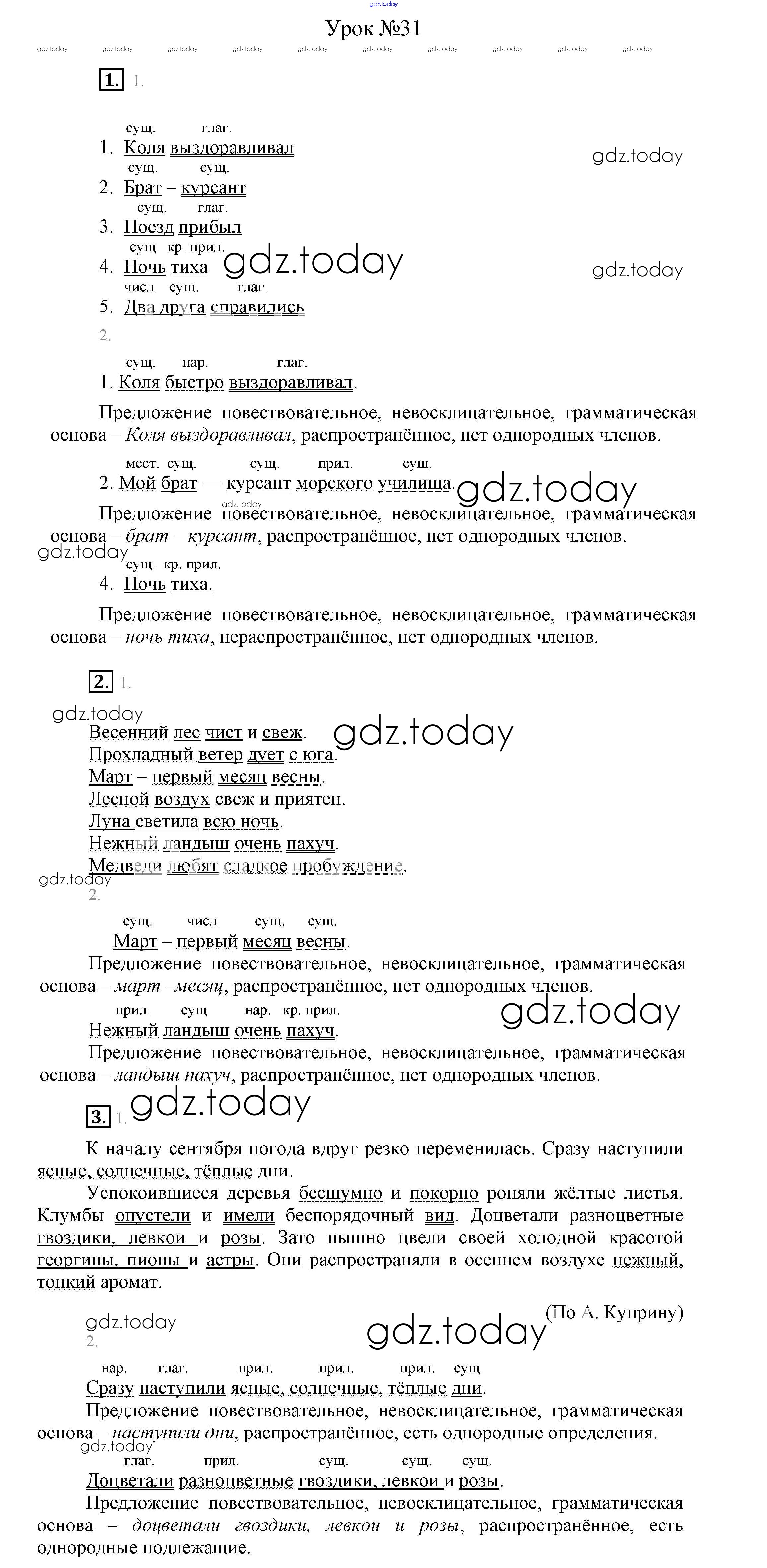 Ответы к Уроки Решение. Часть 1 31 Учебнику по Русскому языку для 4 класса Иванов, Кузнецова Вентана-граф Начальная школа XXI века 2013