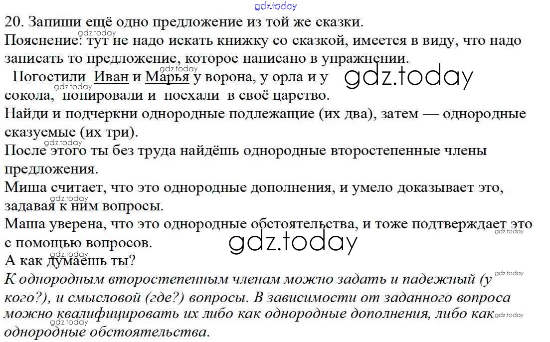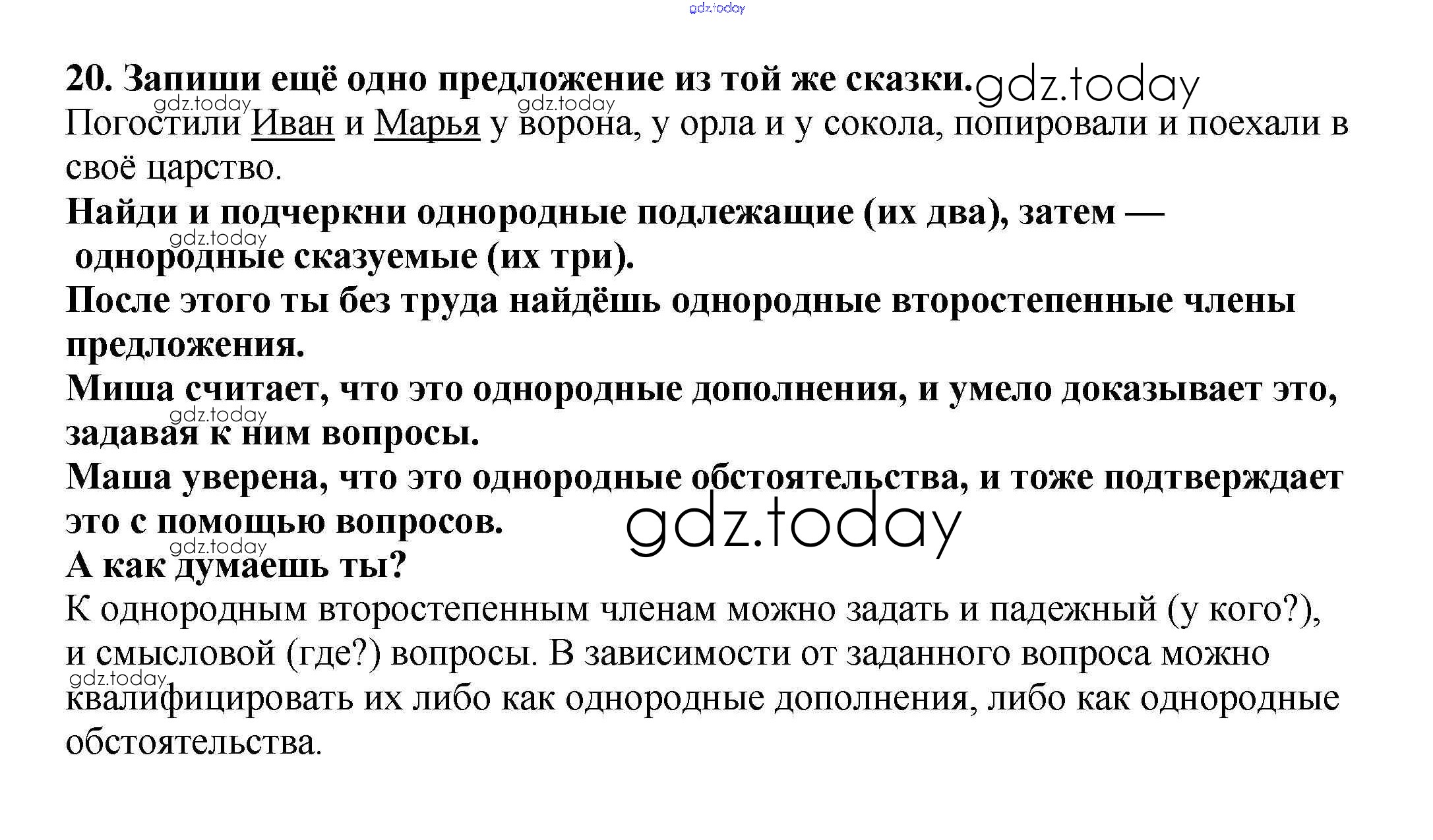 На страницах сайта gdz.today вы найдете учебный и вспомогательный материал, направленный на улучшения знаний школьной программы. ГДЗ - онлайн мир знаний Часть 1. Решение к упражнениям 20 Учебнику по Русскому языку для 4 класса Каленчук, Чуракова Академкнига Перспективная начальная школа 2016