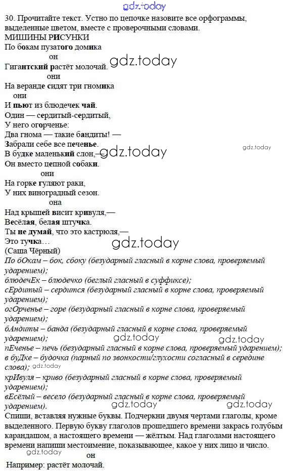 На страницах сайта gdz.today вы найдете учебный и вспомогательный материал, направленный на улучшения знаний школьной программы. ГДЗ - онлайн мир знаний Часть 1. Решение к упражнениям 30 Учебнику по Русскому языку для 4 класса Каленчук, Чуракова Академкнига Перспективная начальная школа 2016