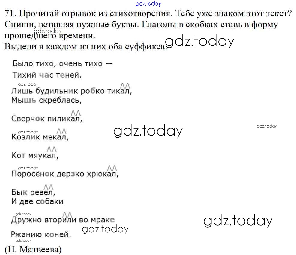 На страницах сайта gdz.today вы найдете учебный и вспомогательный материал, направленный на улучшения знаний школьной программы. ГДЗ - онлайн мир знаний Часть 1. Решение к упражнениям 71 Учебнику по Русскому языку для 4 класса Каленчук, Чуракова Академкнига Перспективная начальная школа 2016