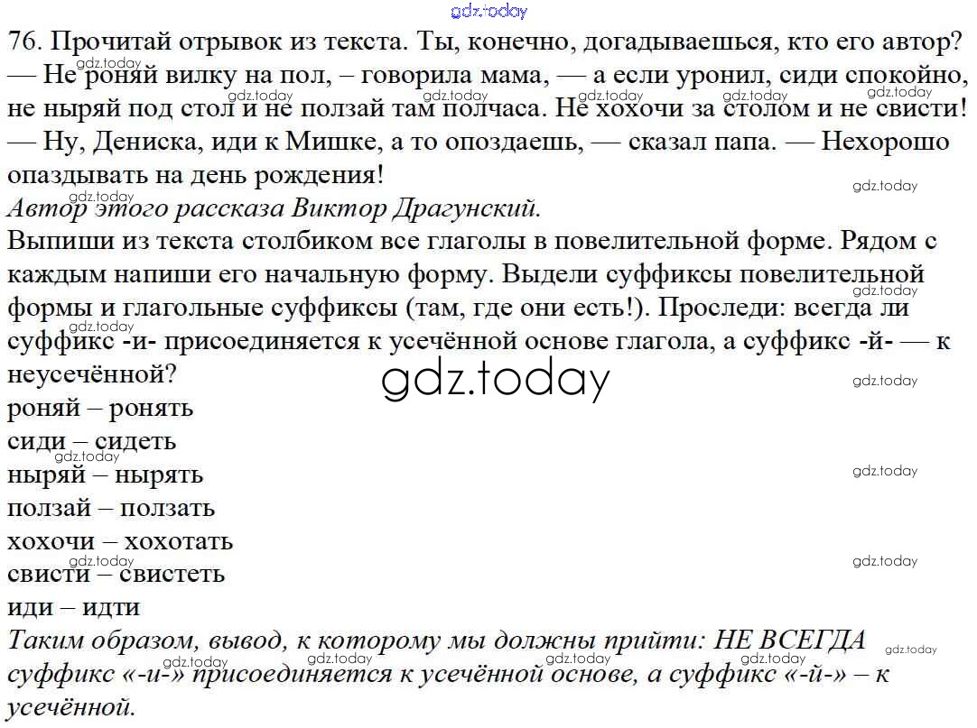 На страницах сайта gdz.today вы найдете учебный и вспомогательный материал, направленный на улучшения знаний школьной программы. ГДЗ - онлайн мир знаний Часть 1. Решение к упражнениям 76 Учебнику по Русскому языку для 4 класса Каленчук, Чуракова Академкнига Перспективная начальная школа 2016