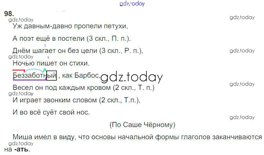 На страницах сайта gdz.today вы найдете учебный и вспомогательный материал, направленный на улучшения знаний школьной программы. ГДЗ - онлайн мир знаний Часть 1. Решение к упражнениям 98 Учебнику по Русскому языку для 4 класса Каленчук, Чуракова Академкнига Перспективная начальная школа 2016