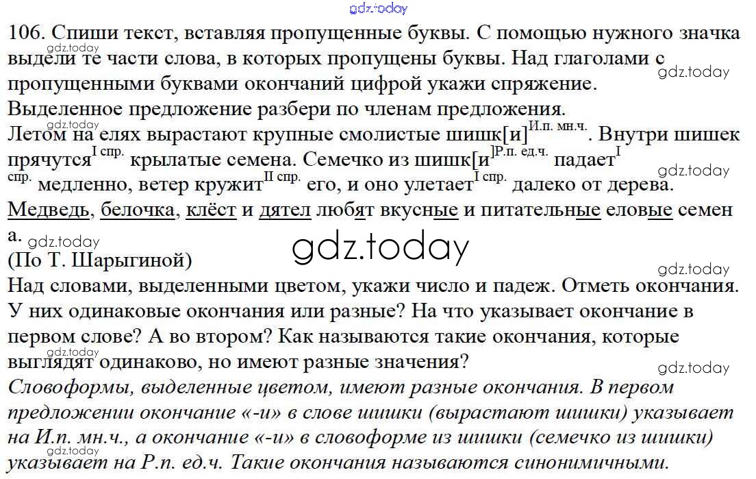 Ответы к Часть 3. Решение к упражнениям 106 Учебнику по Русскому языку для 4 класса Каленчук, Чуракова Академкнига Перспективная начальная школа 2016