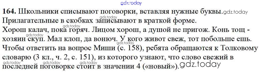Ответы к Часть 3. Решение к упражнениям 164 Учебнику по Русскому языку для 4 класса Каленчук, Чуракова Академкнига Перспективная начальная школа 2016