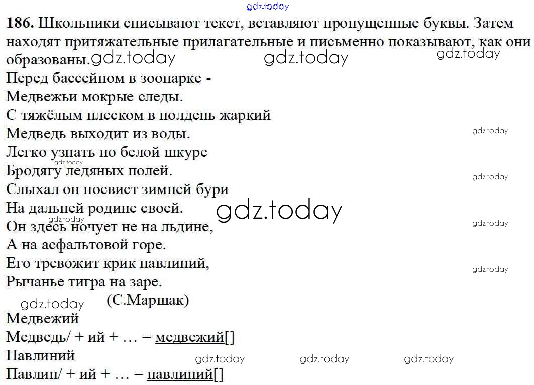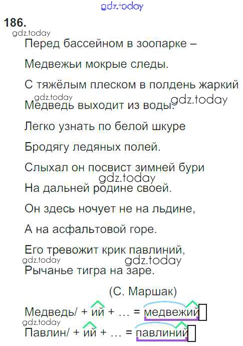 Ответы к Часть 3. Решение к упражнениям 186 Учебнику по Русскому языку для 4 класса Каленчук, Чуракова Академкнига Перспективная начальная школа 2016