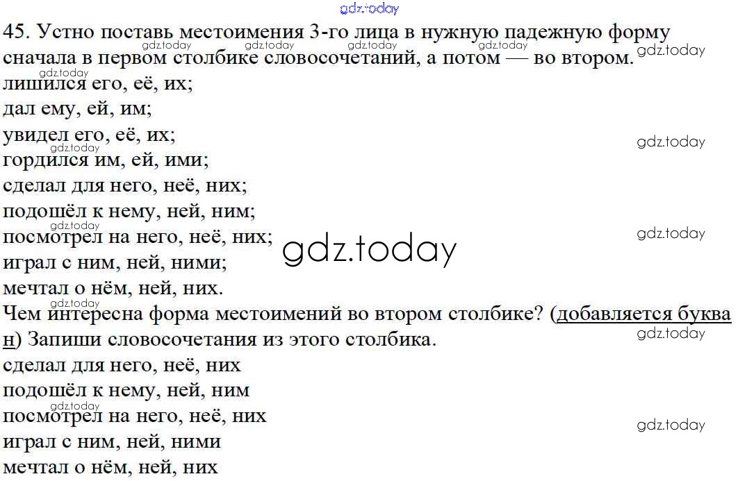 На страницах сайта gdz.today вы найдете учебный и вспомогательный материал, направленный на улучшения знаний школьной программы. ГДЗ - онлайн мир знаний Часть 3. Решение к упражнениям 45 Учебнику по Русскому языку для 4 класса Каленчук, Чуракова Академкнига Перспективная начальная школа 2016