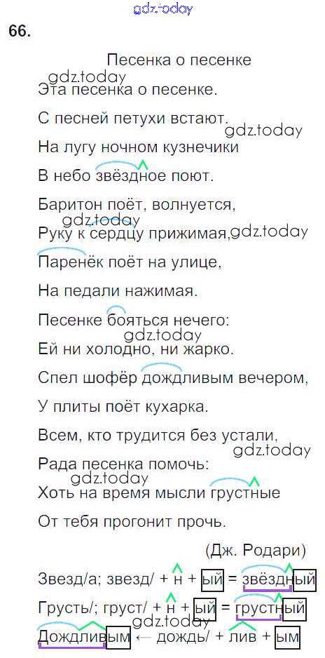 На страницах сайта gdz.today вы найдете учебный и вспомогательный материал, направленный на улучшения знаний школьной программы. ГДЗ - онлайн мир знаний Часть 3. Решение к упражнениям 66 Учебнику по Русскому языку для 4 класса Каленчук, Чуракова Академкнига Перспективная начальная школа 2016